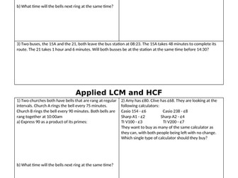 LCM and HCF - WorksheetMath LCM and HCF. Find the highest common factors (HCF) and lowest common multiple (LCM) worksheet of 2 numbers. Range of numbers Numbers up to and including 20 Numbers up to and including 30 Numbers up to and including 40. Answer sheet Include answer sheet. Save worksheet. Worksheet name: SAVE.